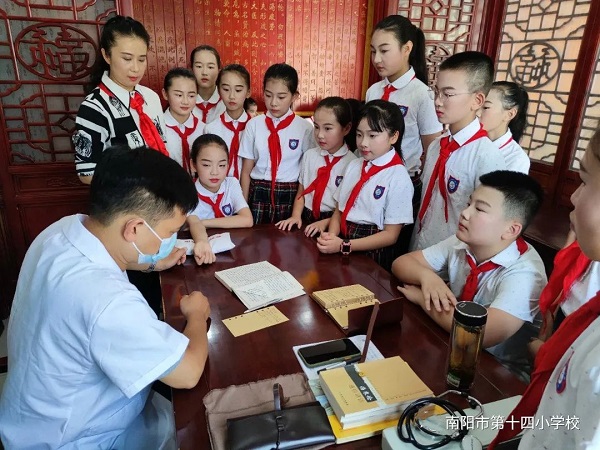 小小中医宣讲员 中华文化传承人——南阳市第十四小学校红领巾中医社团寻访医圣祠纪实一纸经方传承千载,一缕药香跨越古今。8月3日,南阳市第十四小学校组织红领巾中医社团的队员再次探访东汉医学家张仲景的墓祠纪念地---医圣祠,感受中医学神奇,学习中国传统文化。队员们以“争做祖国和人民需要的好孩子,做祖国和人民事业发展的接班人”为目标,争做小小中医宣讲员。