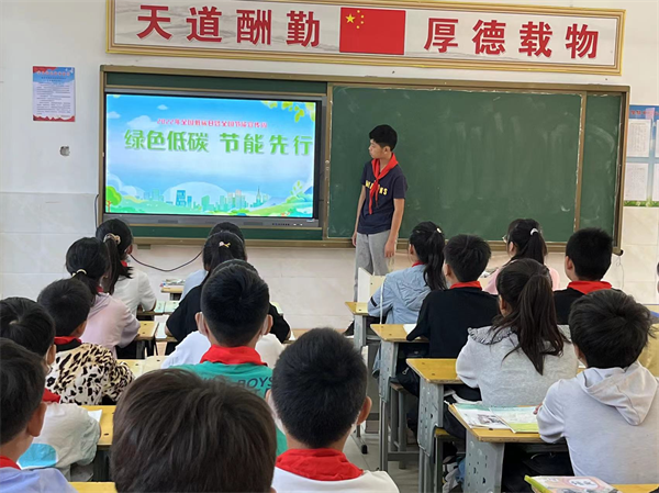 许疃镇中心小学开展“节能减排”系列活动为了践行简约适度绿色低碳生活方式,共建美丽家园,安徽省亳州市蒙城县许疃镇中小学小学围绕“节电、节水、节粮、垃圾分类、低碳环保”这一主题开展了形式多样的节能宣传周活动。 首先,周密部署,全员参与。成立领导小组,明确活动时间、主题和要求,发动全校师生开展各种节能宣传专题活动;其次,组织节能政策、知识的巡展。向学生发放“创建文明城市,你我携手同行”宣传图册,同时在班级文化长廊布置专题手抄报,营造节能周宣传活动氛围;再次,充分利用班会讲授节能环保相关知识,在活动过程中,学生纷纷开动脑筋,利用废弃物品制作了各式各样的手工艺品,有的学生利用泡沫和纸盒制作出小房子,有的学生用旧杂志和报纸制作了小动物造型,有的学生用烟酒盒子制作了储物箱等作品,高年级的同学还绘制了手抄报和节水节电的标志牌,各班活动形式多样,有“校园节约用水宣传”、“校园节约用电宣传”、“普遍垃圾分类,低碳环保”等主题班会活动;组织志愿者举办“回收可利用物品 变废为宝”活动,利用班级微信群对家长开展节能知识宣传。