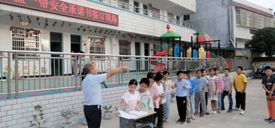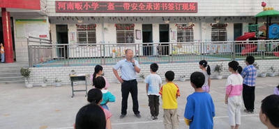英山县河南畈小学举行交通“一盔一带”学生签字活动9月20日,英山县杨柳湾镇河南畈小学用晨会时间段在学校操场开展“一盔一带”交通安全宣传活动。