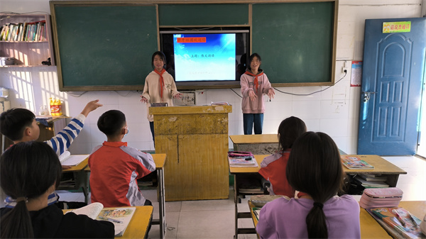 图为口才社团孩子们的在进行古诗词、散文诵读 课后服务坚持学生、家长自愿的原则,一方面指导学生认真完成作业,对学习有困难的学生进行辅导和答疑,指导学生找到有效的学习方法;另一方面开展丰富多彩的点墨、棋艺、绘画、舞蹈、手工制作、阅读、小画家、口才、课本剧、经典诵读、足球、乒乓球、篮球、跳绳、踢毽子、等社团活动,最大努力满足学生的不同需求。