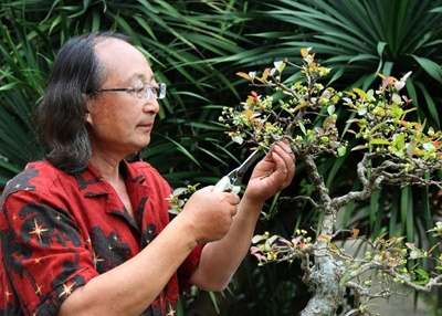 退休感怀 风光早随年岁远,从此盆栽草为邻。 难得袒胸露腹乐,但觉率性狂啸真。 晴天油污一身汗,雨日红土两脚泥。 最是月明风清好,小煮香茗待故人。