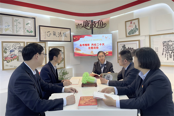 集中观影促学,拓展学习贯彻广度。集中观看《新的伟业 使命在肩 勇毅前行》和二十大报告解读《非凡成就 伟大变革》等视频;利用“班前讲评”“班组会议”等多样方式,原汁原味、全面系统学习二十大会议精神。同时,坚持学以致用,与党员干部“一下三民”实践活动、“我为群众办实事”相结合。