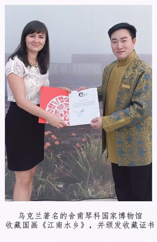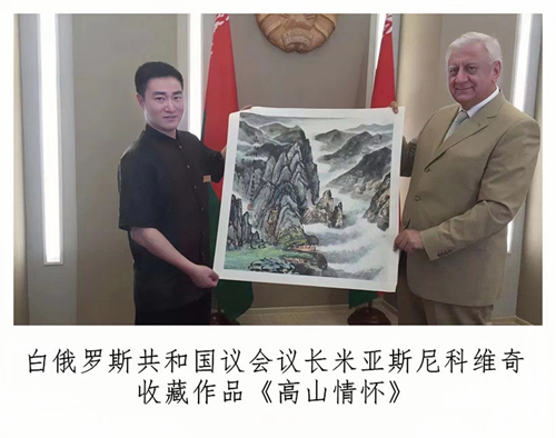 王余根博士作品先后被: 白俄罗斯国家美术馆永久收藏《森林人家》 白俄罗斯国家前最高委员会主席库兹涅佐夫收藏《山居图》 白俄罗斯国家总理米亚斯尼科维奇收藏《高山情怀》 白俄罗斯共和国文化部长斯维特洛夫收藏《一带一路》 白俄罗斯文联主席、国家美术馆馆长普罗克普佐夫先生收藏《青山绿水》 白俄罗斯独联体艺术家联盟主席雷格尔收藏《听泉》 白俄罗斯驻华大使馆收藏《泼彩江南》 日中经济贸易理事长青木俊一郎收藏《流泉图》 日中经济贸易理事浅田隆司收藏《峰峦图》 罗马尼亚农科大学收藏《山之韵》 罗马尼亚工商总会收藏《满载而归》 保加利亚中国大使馆收藏《雲峰人家》 舍普琴科国家博物馆收藏《江南春》 乌克兰前总统库奇马收藏《秀美青山》 乌克兰驻华大使焦明收藏《小桥流水人家》 乌克兰内阁国际关系部部长安多尼余克.塔季娅收藏《长青图》 乌克兰国家博物馆收藏《雄壮太行》 王余根博士先后接受:白俄罗斯国家电视台,国家广播电台;乌克兰国家电视台;泰国国家电视台,泰国民族报,美国世界日报、华侨日报和中国美术报,中国教育电视台,中国网,人民网,光明网,网易,搜狐,腾讯,今日头条等国内外多家媒体的采访宣传和报道。(陶凯龙) |