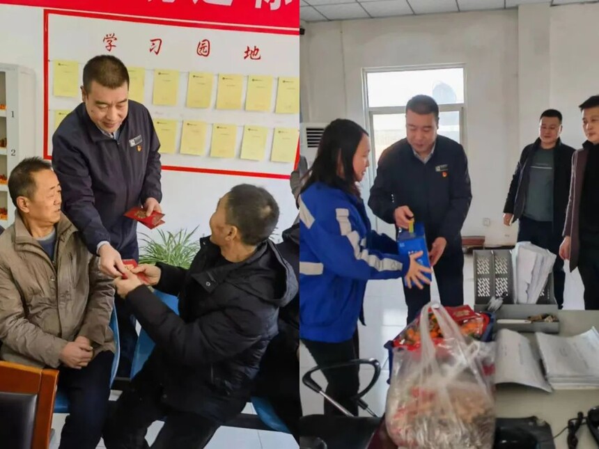 中能煤矿生产运营公司第一项目部年味浓浓度佳节2023年除夕当天,中能煤矿生产运营公司党总支书记、经理汤涛到第一项目部亲切慰问了春节期间坚守岗位的职工,为他们送去了新春的问候与祝福。