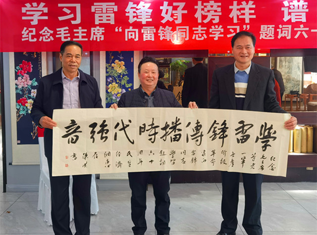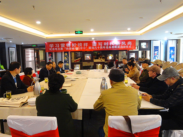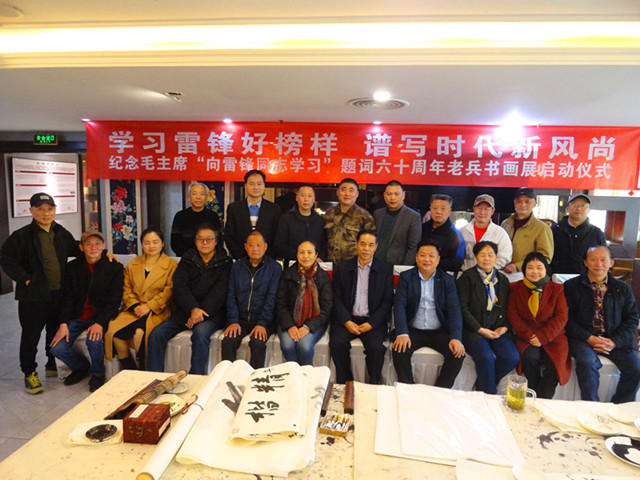 本网讯 今年是毛泽东等老一辈无产阶级革命家为雷锋同志题词60周年,在第60个学雷锋纪念日到来之际,由四川国防诗书画院、内江芭蕉展览馆、成都市青羊区人民政府草市街街道办事处、麻乡约楚菜馆、成都市军嫂创业中心、中国民生经济网等单位联合举办的“学习雷锋好榜样 谱写时代新风尚——纪念毛主席‘向雷锋同志学习’题词六十周年老兵书画展”启动仪式,于2023年3月3日在四川省成都市青羊区德盛路33号星逸酒店2楼麻乡约楚菜馆隆重举行。