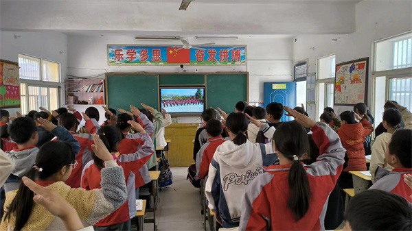 在观看视频时孩子们认真的表情,让人为之动容,英烈们的英勇行为和丰功伟绩将永远铭记在中华儿女的心中。少先队员们跟随者镜头,唱国歌、行少先队员队礼,跟随着音乐时而深思,时而默哀,来表达自己对先烈的缅怀,对先烈的感恩之心。