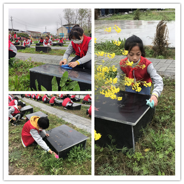 少先队员们胸带红领巾整齐列阵,怀着无比崇敬的心情,在庄严肃穆的革命烈士陵园前默哀,通过出旗、奏唱《国歌》、齐唱《中国少年先锋队队歌》、向烈士敬献花篮等形式表达对革命先辈们的哀思,少先队员代表步入烈士陵园内,擦拭革命烈士墓碑,为烈士敬献鲜花,近距离了解先烈们的革命精神,追思革命先辈的丰功伟绩。队员们向为民族独立、国家富强、人民幸福献出宝贵生命的革命烈士寄托深切哀思,表达出对革命烈士的崇敬之情。