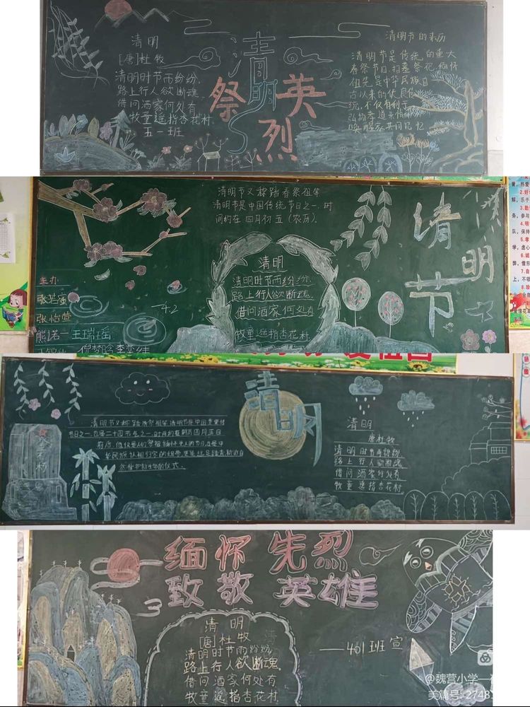学校还组织各班办一期清明节主题黑板报,每位学生制作一期清明节主题的手抄报。