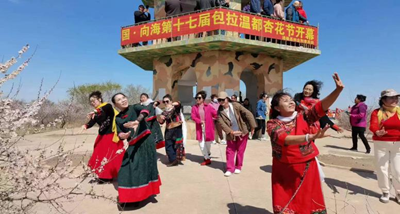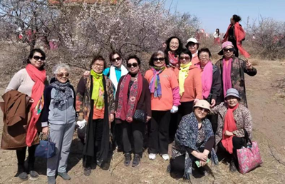 在不知不觉中10点钟到达包拉温都,“真好看!”老人们到达包拉温都后,不约而同地发出感叹。包拉温都,蒙语译为“紫色的山岗”,自古以来就是杏花的天堂,漫山的天然山杏树远离城市的喧嚣,花枝招展,随风颤动,像一片片漂浮的云朵,仿佛来到人间仙境,让人乐此不疲、流连忘返。大家情不自禁的跳起舞蹈,拍照。