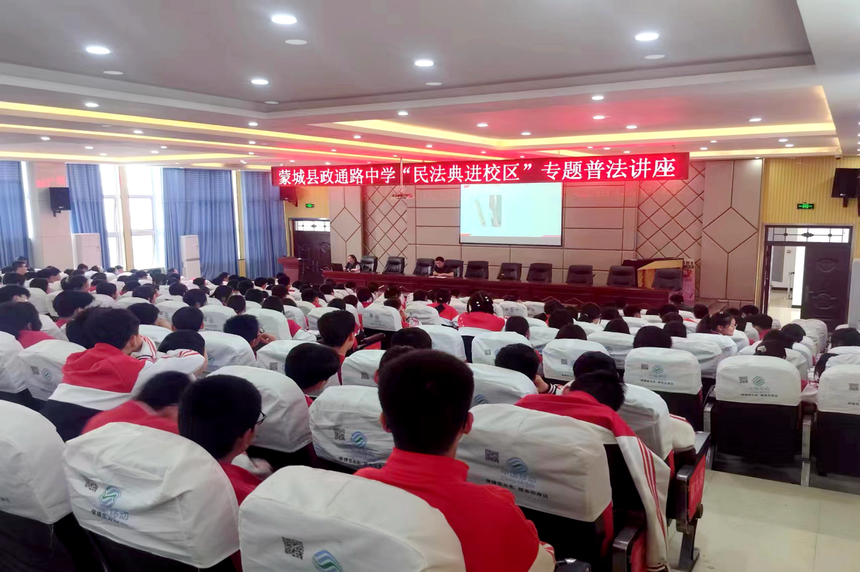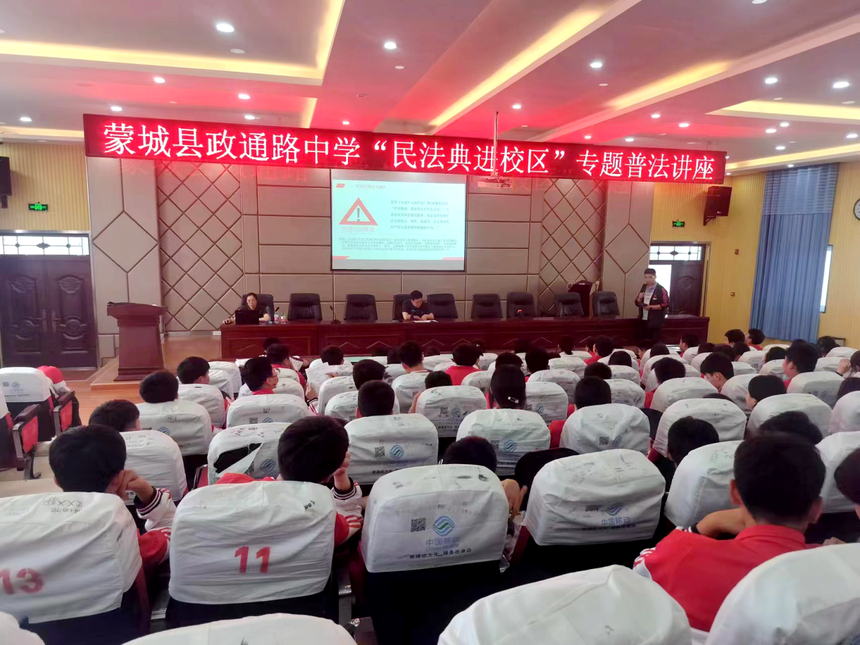 5月24日,蒙城县人民法院庞然、张悦两位法官受鲲鹏中学的邀请,下午4:00在鲲鹏中学政通路校区行知楼五楼报告厅举行了以普及《民法典》相关知识为专题的普法活动讲座。