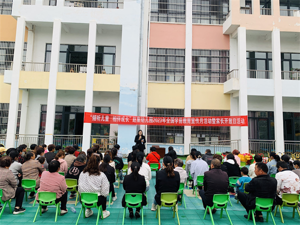 倾听儿童,相伴成长--赵集幼儿园学前教育宣传月暨家长开放日活动 值第十二个全国学前教育宣传月活动之际,5月23日—25日,赵集幼儿园大、中、小班年级组依次举行了家长开放日活动。目的是引导和帮助家长树立正确的儿童观和教育观,营造有利于儿童健康成长的良好社会氛围,通过家园共育,共同提高科学育儿水平,实现孩子健康成长的共同目标。同时,活动还对对安徽省暖民心十项工程政策进行宣传,介绍了我园安心托幼工作开展情况。本次活动通过对家长进行集体讲座、参观幼儿园环境、观看幼儿早操、幼儿集体活动观摩、亲子互动、交流座谈、填写活动反馈表等多个环节,让家长全面了解了孩子在园的表现以及幼儿园的办园理念和办园目标,亲身感受了幼儿园是如何倾听儿童心声,理解孩子的需要,支持儿童发展的。教师通过给孩子时间和空间,让孩子去探索、去发现、去成长的环节,让家长们感受到从孩子的需要出发,学会放手,等待与陪伴孩子慢慢成长的重要意义。