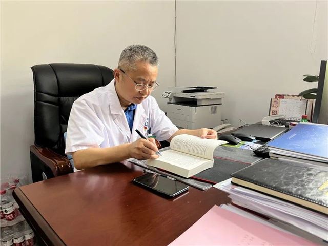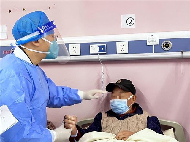 笑容满面的张件云主任医师每天都神采奕奕,被问及“养生秘笈”,他半开玩笑地说:“也许是因为我热爱中医,热爱着我的工作”。 张件云有多重身份,是党员,是副院长、是医生,是中医工作研究者,也是病人眼中的亲人。 “医”不容辞,初心在“疫” 线熠熠生辉 时间回溯到去年的春节前夕。“新十条”发布后,新冠肺炎疫情防控转入医疗救治阶段,一时间省康复医院的病床全部住满。“啥也没想,怕也没用,患者需要我的时候我必须上”,张件云云淡风轻的讲述背后,进行着一场分秒必争的“疫”线故事。