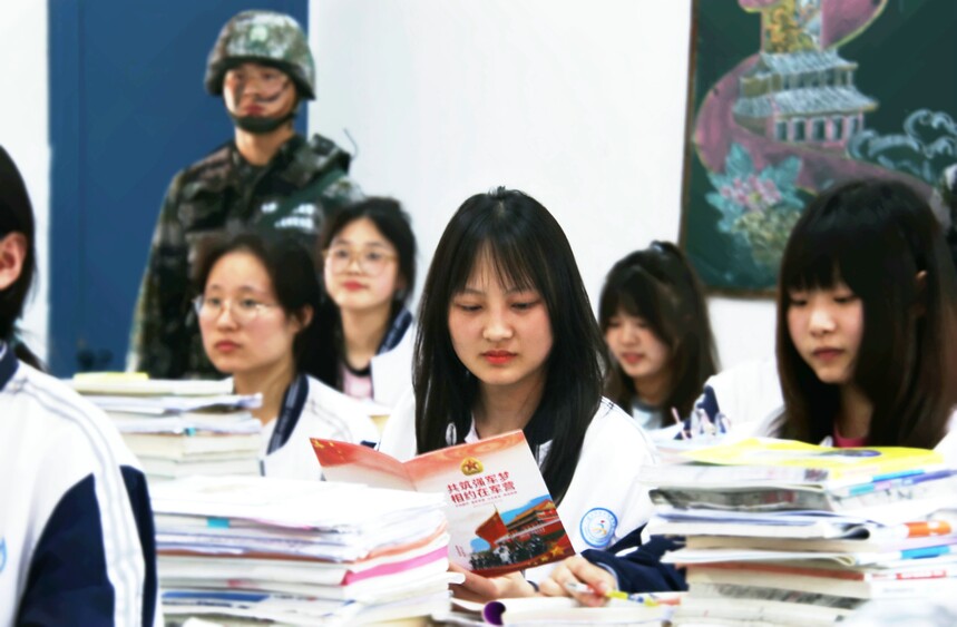 安徽亳州:国防教育进校园6月3日,安徽亳州市谯城区人武部“征兵宣讲团”为亳州市第五中学的高中生讲解国防知识,解读入伍优待政策,表演战术和刺杀操动作,送上一堂生动的国防教育课,为高考学子减压。(李泽阳 洪雷)