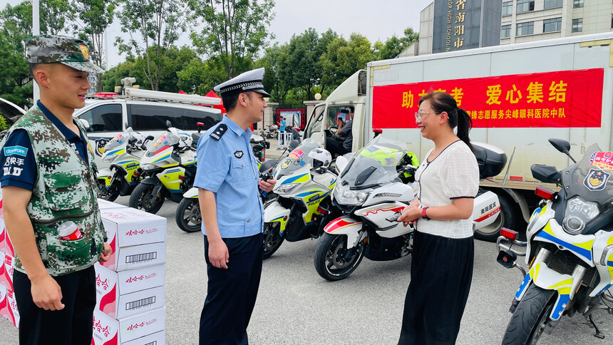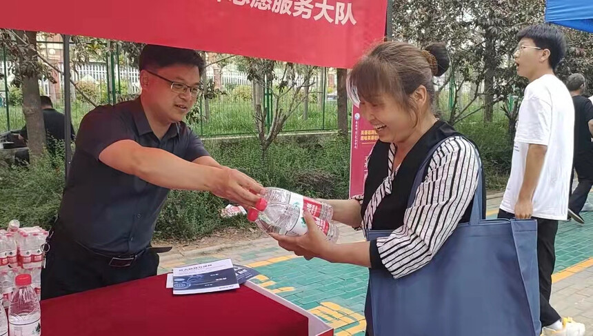 这次学雷锋志愿服务分别在南阳市一中、八中、二十一学校、第一完全学校考点设立志愿服务点,贴心地为考生及家长准备了饮用水、急救包、爱心送考摩托车等,确保做好突发情况应急工作。