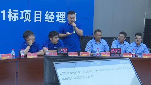 参赛队伍是由监理单位、中心实验室、各施工单位分别组织一支由三名安全管理人员组成的代表队伍。本次竞赛共四个环节分别为个人必答题、小组必答题、抢答题和风险题。为了保证每个人的参与感,会抽取现场观众进行互动答题。在规定的时间内答题分数最高作为参赛评比依据,以最终正确答题分数作为参赛评分标准。赛场上参赛选手个个集中精力,冥思答题,通过紧张角逐,最终每个队伍都取得了不错的成绩。