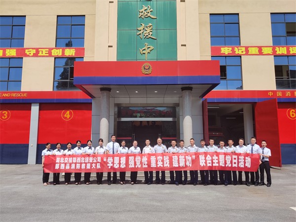 联合党日扩圈赋能 提升群众出行品质——湖北交投鄂西北运营公司郧西党支部与郧西县消防救援大队联合开展主题党日活动 为庆祝中国共产党成立102周年,推动主题教育走深走实,6月30日,湖北交投鄂西北运营公司郧西党支部与十堰市郧西县消防救援大队联合开展“学思想、强党性、重实践、建新功”主题党日活动。