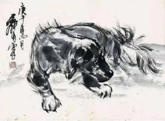 徐悲鸿作品《侧目》 我们知道,李可染先生画的牛,吴作人画的骆驼,黄胄画的驴子,创前人所未有。张善孖、高剑父高奇峰兄弟、刘奎龄刘继卣父子、胡爽庵、冯大中等都是画虎能手。徐悲鸿长于画马,亦常画雄狮等走兽。本段将其与王阔海先生画的动物走兽,作进一步的概括性比较。 与画马一样,徐悲鸿用的已然是西画的明暗光影和焦点透视,来画不同的动物。在徐悲鸿之前,中国画史上唐代韩干、北宋公麟、元代赵孟俯等画马,用得是勾线设色一丝不苟的工笔画。而到了王阔海先生画的狮子、老虎等动物,与徐悲鸿等前辈画家相比,同样有着超越前人的高度和自己的风格特点。