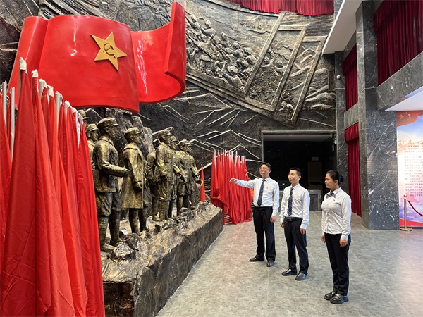盛夏的烈士陵园,苍松掩映,庄严肃穆。在郧西革命烈士纪念碑前,全体党员怀着无比崇敬的心情瞻仰了纪念碑,并在高耸的纪念碑前,面对党旗,举起右手,重温了入党誓词,再次回顾入党时的庄严承诺和坚定初心。 随后在鄂豫陕革命纪念馆内,大家怀着崇敬之情参观了历史文物和珍贵图片,聆听革命前辈英勇斗争的故事,沉浸式接受精神洗礼。
