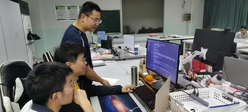 图为 团队成员在实验室进行算法研究
