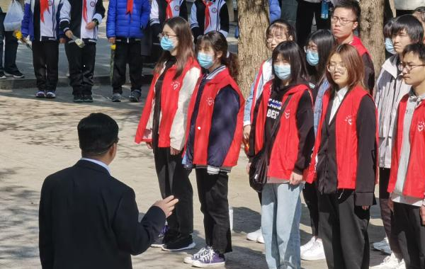 图为青“码”逐梦实践团成员在聆听组织者的讲解 陵园负责人讲解结束后,大家怀着更崇敬的心向着纪念碑默哀三分钟,并拿起了大扫帚,自发在烈士墓碑前进行了清扫,以这种方式寄托大家的哀思。