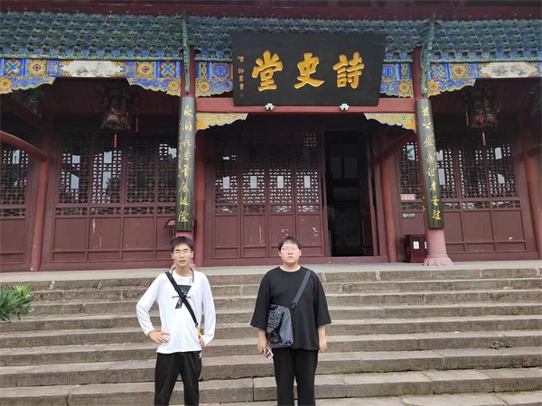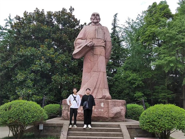 图为青“码”逐梦实践团成员与诗圣雕像的合影 从诗圣广场右侧,可以进入杜甫草堂,三台杜甫草堂,是继成都杜甫草堂之后的四川第二大杜甫纪念堂。草堂内亭台楼榭具有盛唐风味,佳木林立具有伟岸之气,风景迷人使人流连忘返,内部还有杜甫生平介绍,杜甫在三台期间的事迹及名篇佳作展览,名人字画等。