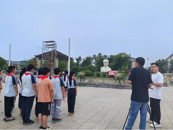 革命英雄我来瞻 一寸河山一寸血,历史永远铭记心。为了让青少年勿忘国耻,牢记使命,传承红色精神,继承民族之魂,深入弘扬民族精神,以英雄模范为榜样,从小立志争做担当民族复兴大任的时代新人,辖区青少年在镇负责人的带领下,一起瞻仰齐国庆烈士遗像并参观其烈士纪念馆,重温峥嵘岁月,了解中华儿女为国奋斗的故事。