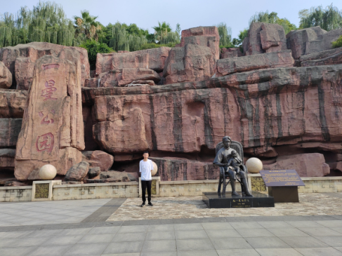 青“码”逐梦实践团成员在一曼公园参观学习 走上石阶一座宏伟的、栩栩如生的石像矗立在山巅之上,她衣着朴素,却遮掩不了她的英雄气概,她目光如炬,眺望着远方的大好河山,仿佛将那天下尽收眼底,无不展现出她英勇坚毅、崇尚无私的精神风貌。石像下方的文字的字里行间都在叙述着她是一位抗日民族英雄,即使有着时代的鸿沟也能感受到她投身革命的初心和对解放事业的坚定信念。