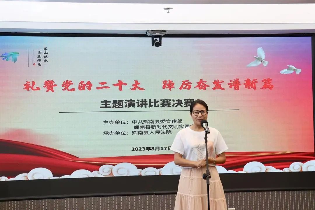 辉南县人民法院开展“礼赞党的二十大 踔厉奋发谱新篇”主题演讲比赛为深入学习宣传贯彻党的二十大精神,筑牢思想防线,夯实思想基础,坚定理想信念,切实把法院干警的思想统一到党的二十大精神上来,激发不断攀登、砥砺奋进的拼搏精神,8月17日,辉南县人民法院举办了主题为“礼赞党的二十大 踔厉奋发谱新篇”演讲比赛,此次比赛由院党组书记、院长崔新江及其他院领导担任评委,部分干警代表观看了比赛。