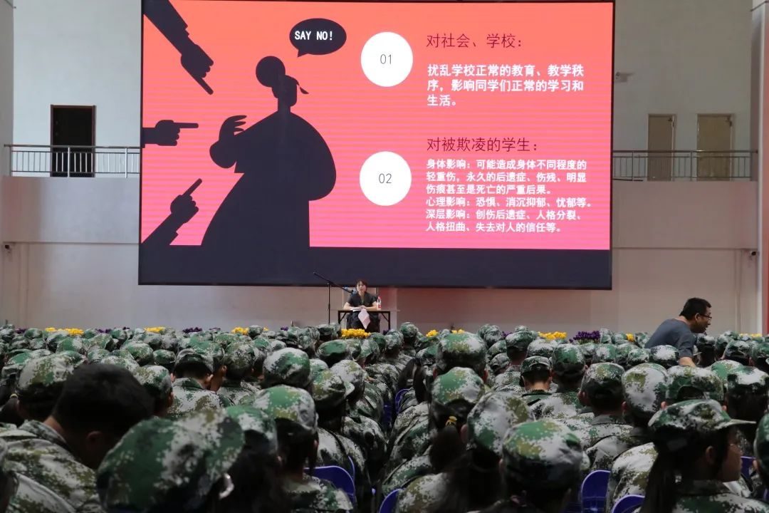 此次讲座由法官助理李洪晔担任主讲人。她首先向在场的高一新生送上了祝福,希望他们在高中的学习中奋力拼搏,取得更好的成绩,随后,主讲人通过PPT为大家讲授学生欺凌和校园贷的相关内容,通过以案释法剖析与视频演绎,详细讲解了“学生欺凌是什么?它有哪些表现形式?学生欺凌的危害以及如何应对学生欺凌?什么是校园贷以及种类和危害?”,这些问题都关乎学生的健康成长和校园的和谐稳定,为了让学生们更好的理解这些问题,主讲人结合案例及视频内容,将专业的法律知识转化为通俗易懂的语言文字,让现场的学生们都能够更好地吸收法律知识,提高防范意识。