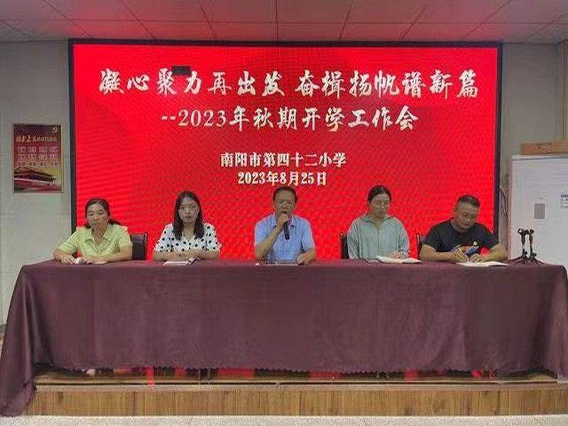 温暖开学季,最美新开篇——南阳市第四十二小学扎实做好开学前准备工作带着希望和憧憬,我们迎来了新的一学期,在新的征程中,南阳市第四十二小学全体教师一如既往地带着满腔热情和责任心投入到工作中。开学前胡校长组织全体教师召开了新学期第一次会议,在开学布置会上,胡校长明确了本学期学校工作的发展方向,并从校园环境、卫生、安全、礼仪等方面对学校工作进行了具体要求和安排,要求全体教师用心用情扎实做好各项开学前的各项准备工作,为学生的健康成长保驾护航!
