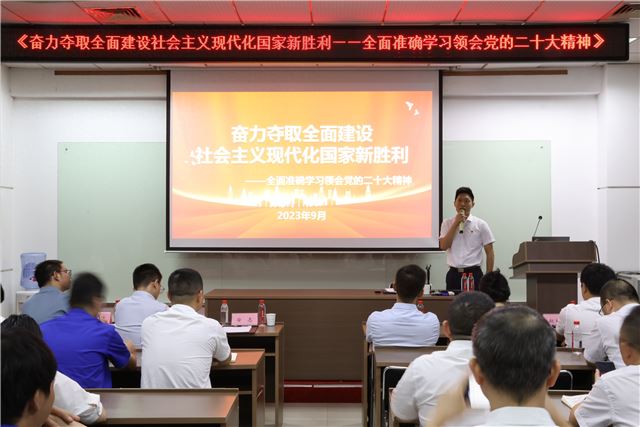 省青联法律界别委员们深入园区参观华自科技后,党的二十大代表、长沙市公安局高新分局雷峰派出所所长、省青联常委、法律界别委员安志开展了“奋力夺取全面建设社会主义现代化国家新胜利——全面准确学习领会党的二十大精神”专题宣讲。安志围绕党的二十大主题,从报告起草过程,主要成果,过去5年的工作和新时代10年的伟大变革到马克思主义中国化时代化,中国式现代化,全面建设社会主义现代化国家的目标任务,坚持党的全面领导和全面从严治党,应对风险挑战等7个方面,系统、深刻的对党的二十大精神进行了解读。