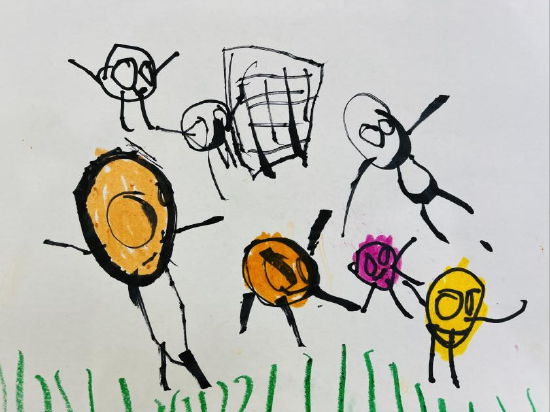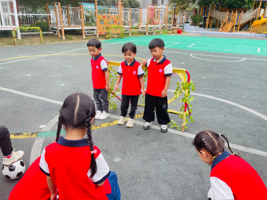 合肥市荣幼总园:一个足球员 四个守门员户外足球自主游戏时间,小朋友们正在操场上自由的奔跑、玩耍,有些幼儿正在夹球跳,有些幼儿正在抛球……足球可以怎么玩?在筱筱的带领下,合肥市荣幼总园中二班一场智慧与快乐进发的“守门员”游戏就这样拉开了帷幕…… 一个守门员 游戏时,筱筱站立在球门前,双手打开,两条腿在球门左右来回踱步,嘴里还不停的说“哪个球我都可以踢的准”,这时茉茉趁着筱筱说话的时间,瞄准用力将球踢入门。 ![]() 两个守门员 妍妍抱着球走了过来,和杨杨一起当起了守门员,依依双手用力将球推进了球门里,旁边的守门员杨杨对着正准备踢球的依依说“你犯规,你犯规……”,杨杨赶快将球踢了出去,好玩的游戏引起了茉茉的注意,她也将球抱了过来进行射门,一起玩起了守门员和射门的游戏…… 三个守门员 桐桐、妍妍、伊伊正在承担守门员的角色,他们三个人把小小的球门堵得满满的,徘徊在球门口的殊殊特别想进球,趁着妍妍说话的,殊殊将球放在了妍妍和桐桐空隙的地方,右脚瞄准用力,将球提了进去,晨晨、瑶瑶也被吸引了过来,也在踢球射门。 ![]() 四个守门员 茉茉、骞骞、远远、晨陈4人在当守门员,他们在球门口挤来挤去,引发起了争执,瑶瑶抱着球走了过来“不需要这么多人。”依依说“那你觉得是两个人还是一个人,”瑶瑶说:“一个”……守门员到底需要几个呢?由此我们展开了探索。 识别与分析 (1)从现场和实景中我们发现,幼儿自主足球游戏教师参与的不多,幼儿基本完全是自主的进行足球游戏,教师更多关注幼儿的安全问题。 (2)幼儿自主运功缺少一定的运动经验,一人守门变成了四人守门,球员的进球更难了,进球次数少了,兴趣也降低了,守门员的运动量和强度不足,站在球门前保持不动就可以将球挡住。 (3)对于在幼儿自主运动中遇到的问题,教师需要及时观察并提供需要的帮助,对于守门员的人数要求要几个?可以用身体的哪些部位接球?教师需要进行足球技术的指导,让幼儿满足基本需求的情况下能够进一步的发展,让每一个幼儿都可以展翅翱翔在自由探索的世界。 回应与支持 我根据幼儿的身体、心理特点和足球守门的特点,给幼儿设计并实施了3个阶段的活动,激发幼儿踢足球的兴趣。 ![]() 绘画表征——你觉得守门员需要几个 ![]() 家园共育——绘画表征(用哪些部位踢球) ![]() 动作表征——学学守门员 效果与感悟 (一)专业引领,科学指导 第一,适当退位——等待幼儿的发展。教师要学会适当退位,给幼儿提供自主学习、自主发展的空间,让幼儿多思考如何解决游戏活动中的交往问题,支持他们在同伴互动中进步。 (三)家园支持,促进互动 幼儿的成长与进步是可持续性地、阶段性、螺旋上升的,所以对于幼儿的指导也是可持续的,任何方案都有一定的限制性,都没有完美的,但是我们的孩子是可持续性发展的,所以,要跟上幼儿的发展,给幼儿提供尽可能多的,能够促进幼儿持续进步的发展。 |