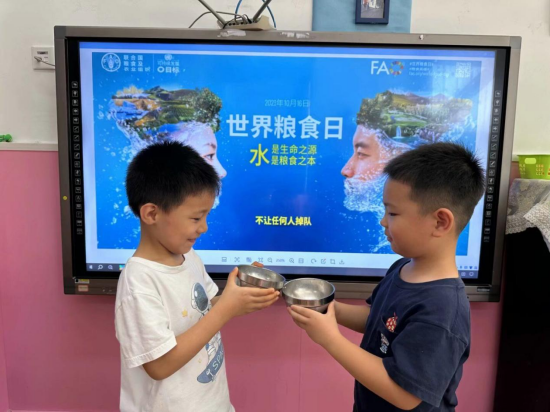 合肥市长江路幼儿园杏林分园:节粒粒之粮 惜不易之食节约粮食是中华民族的传统美德,一粒米,千滴汗,粒粒粮食汗珠换。2023年10月16日是第43个世界粮食日,为了帮助幼儿了解粮食的重要性,养成爱惜粮食、节约粮食的好习惯,合肥市长江路幼儿园杏林分园在党支部书记、园长蔡葵的统筹安排下,开展了以“节粒粒之粮,惜不易之食”为主题的世界粮食日系列活动。 世界粮食日简介 世界粮食日(World Food Day)起始于1981年10月16日,是世界各国政府每年在10月16日围绕发展粮食和农业生产举行纪念活动的日子,其宗旨在于唤起全世界对发展粮食和农业生产的高度重视。 世界粮食日的由来 1979年11月,粮农组织第20届大会决定从1981年起,把每年的10月16日(粮农组织创建纪念日)定为“世界粮食日”,以期引起人们对全球粮食短缺问题的重视,敦促各国采取行动增加粮食生产,与饥饿和营养不良作斗争。选定10月16日作为世界粮食日是因为粮农组织创建于1945年的这一天。 今年是第43个世界粮食日,联合国粮食及农业组织将今年全球活动主题确定为:“水是生命之源,水是粮食之本。不让任何人掉队。”水对于地球上的生命至关重要,人口快速增长、城市化、经济发展和气候变化正在给地球水资源带来越发沉重的压力,需要各国携手合作,为食物、人类和地球的未来采取水资源保护行动,为所有人创造一个更美好、更可持续的粮食未来。 国旗下讲话 升旗仪式上,主持人李心怡老师详细的向小朋友们介绍了世界粮食日,并用一首古诗《悯农》告诫幼儿每一粒粮食都是农民伯伯辛勤的劳动换来的。同时,号召所有教师和幼儿要从自身做起,节约每一粒粮食,反对浪费的行为,养成勤俭节约的良好习惯。 ![]() 节约粮食我知道 老师们通过有趣的课件、谈话、绘本阅读等形式帮助幼儿了解世界粮食日的由来,感知农民伯伯种粮食的辛苦,了解粮食的来之不易,将“粒粒皆辛苦”根植于心田。 ![]() 水是生命之源,水是粮食之本,我们的一日生活都离不开水。通过有趣的视频和故事《小水滴的旅行》,小朋友们了解了水循环的过程,并把自己的想法付诸画纸上,将节约粮食、节约水的传统美德内显于心,外显于行。 ![]() 光盘行动我能行 为进一步培养节约习惯,小朋友们还发起“光盘行动”倡议,他们都积极地参与其中,争做“节粮小明星”。餐后相互查看是否剩饭菜,共同督促大家向光盘看齐,以实际行动来争做光盘行动的践行者和倡导者,让“光盘”成为一种习惯。 ![]() 家园合作促节约 教师还在班级群中,呼吁大家节约用水,保护水资源。 ![]() 回家后,小朋友们纷纷付诸行动。有的用洗菜水浇花、拖地、冲马桶;有的用淘米水浇花;有的用洗完衣服的水拖地;有的用洗完脸的水用来洗脚,然后在用来冲马桶。。。。。 ![]() 水循环是保护水资源的最常用手段,当然也是节约粮食的一部分,我们在日常生活中进行水的循环利用可以为我们的节约粮食工作增添自己的一份力量。 节约粮食倡议书 亲爱的家长、小朋友们: 2023年10月16日是第43个世界粮食日,勤俭节约是中华民族的传统美德,为树立勤俭节约意识和粮食危机意识,使“节约粮食,杜绝浪费”成为我们的自觉行为,长江路幼儿园杏林分园向老师、小朋友、家长们发出如下倡议: 我们向教师倡议: 1。树立好榜样,言传身教,时刻谨记自身的文明用餐行为习惯,养成吃多少盛多少,树立节约光荣、浪费可耻的思想观念。 2。以身作则,厉行节约,杜绝浪费,并引导幼儿践行光盘行动,杜绝舌尖上的浪费。 3。通过绘本教育、餐前教育,让小朋友节约粮食不浪费,珍惜农民辛勤劳作的成果。 我们向小朋友倡议: 1。不偏食,不挑食,营养均衡身体好。 2。在幼儿园、家里,小朋友都要做一个“爱惜粮食”的小模范,要做到不剩饭,懂得粮食的来之不易,节约每一粒粮食,每一口饭菜。 3。就餐时学会安静,爱护餐具,保持桌面卫生。 我们向家长倡议: 1。面对浪费,及时劝导。 2。不攀比,以节约为荣,浪费为耻。 3。家庭备餐适量,做光盘行动的拥护者。 “谁知盘中餐,粒粒皆辛苦”。从现在做起,帮助孩子养成爱粮节粮的好习惯。坚守“粮”心,拒绝浪费。让中华民族传统的节俭的美德代代相传,让勤俭节约的种子在孩子们的心里生根、发芽!(周媛) |