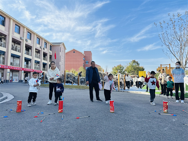 (夷陵)龙泉分园开展第三届乡土游戏亲子运动会2023年11月17日上午,宜昌市夷陵区直属机关幼儿园龙泉分园,开展了以“乡土游戏怡悦童心 亲子陪伴点亮童年,”为主题的第三届乡土游戏亲子运动会。 随着嘹亮的《运动员进行曲》响起,乡土游戏亲子运动会拉开帷幕,来自大班的25名小朋友带来了跳绳、走高跷、滚铁环的精彩表演。紧接着各班运动员代表队、家长代表队共800余人迈着矫健的步伐,昂首挺胸进入运动场,充分展示了幼儿园教师、幼儿和家长积极向上的精神风貌。