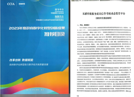 南阳市交通运输局又喜添一项荣誉日前,由市交通运输局牵头编制的“南阳市无感审批服务质量信誉考核动态监管平台”项目成功入围中国通信工业协会平台经济创新专委会评选的《2023年度政府数字化转型典型创新成果推荐目录》,入编“新时代政府数字化转型高质量发展典型创新成果”篇章。