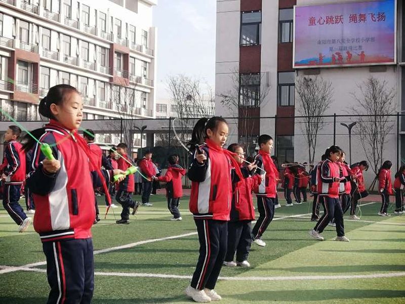 童心跳跃 绳舞飞扬--南阳市第八完全学校小学部举行第一届跳绳比赛为落实“双减”政策,丰富校园文化生活,增强学生身体素质,12月8日,南阳市第八完全学校小学部成功举行了第一届跳绳比赛。