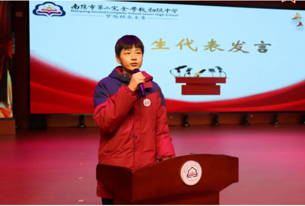 赵校长将“中考战旗”授予九年级团队,也将2024中考必胜和二全必胜的信念传递给九年级团队。这面战旗是出征的号角,更是责任与担当。九年级团队定一路披荆斩棘,不负厚望。会上对优秀学生进行了表彰,激励同学们再接再厉,突破自我,续创辉煌。 少年无惧来路险,彼方定有荣光在。九(5)班王艺霖同学代表九年级全体同学在这里许下誓言,从今天起做一个上进的人,一个认真的人,一个执着的人,立大志,做小事,成大器。