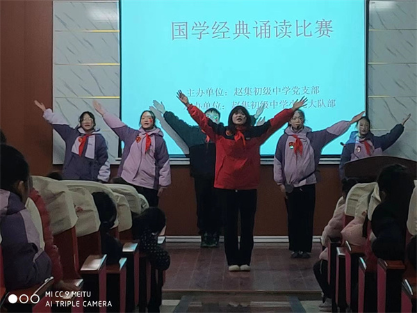诵读中华经典美文,传承华夏文明古风——蒙城县赵集初级中学小学部 2023年12月14日下午2点20分,赵集初级中学小学部举办了国学经典诵读比赛活动,六个年级27个班级的代表们或欢天喜地或严阵以待或心潮澎湃地来到了比赛现场。