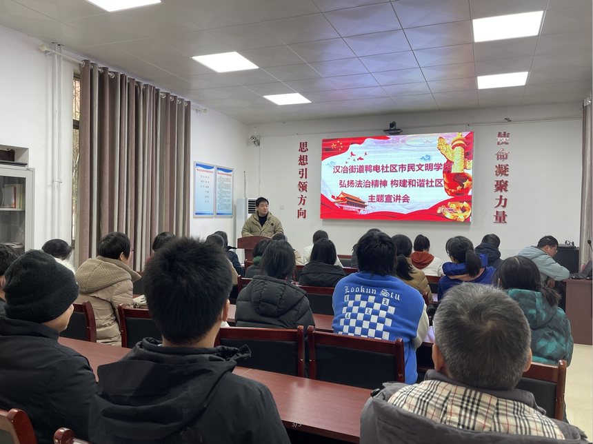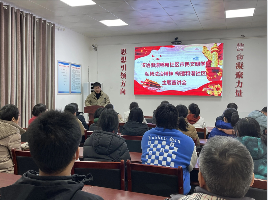 宛城区汉冶街道:组织召开“弘扬法治精神 构建和谐社区”主题宣讲会为进一步弘扬法治精神,强化法制宣传教育,增强社区群众的法治观念。近日,汉冶街道鸭电社区在新时代文明实践站开展了“弘扬法治精神 构建和谐社区”主题宣讲会。