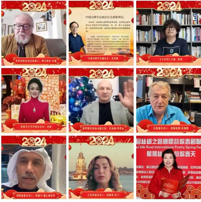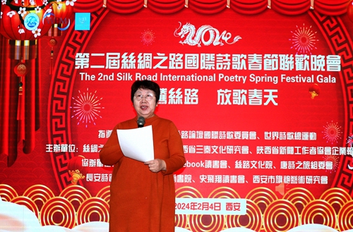 “龙腾丝路 放歌春天”第二届丝路国际诗歌春节联欢晚会在西安举办2月4日,是立春节气,古城西安寒雪飘舞,高新区第四初级中学Onebook图书馆却是春意盎然,欢歌笑语,诗声朗朗,第二届丝绸之路国际诗歌春节联欢晚会成功举办。 ![]() ![]() 本次活动由联合国世界丝路论坛国际诗歌委员会、世界诗歌运动指导,丝绸之路国际诗人联合会、陕西省三秦文化研究会、陕西省新闻工作者协会企业报分会主办。世界诗歌运动总协调人费尔南多.伦德、《大诗刊》主编曹谁、英国华文写作笔会会长冰凌、俄罗斯作家协会副主席瓦迪姆.特里金,以及来自法国、阿联酋、土耳其的著名诗人等通过视频向大会发来祝福,抒发对丝绸之路、对诗歌的热爱之情。 ![]() ![]() ![]() 解莉芬致辞 ![]() 王芳闻致辞 本届春晚总策划、丝绸之路国际诗人联合主席王芳闻莅临晚会,著名文化学者、原陕西省政协文教委主任雷涛、省政协原文教委副主任解莉芬、陕西省三秦文化研究会副会长权永生、高新四初执行校长万江、陕西省新闻工作者协会企业报分会主席许若青、西安报业传媒集团(西安日报社)对外文化传播中心主任周媛、西安市作家协会秘书长张军峰,高建群读书会副会长翟大学、西安唐诗之旅组委会主任王渊平、副主任张国柱等应邀出席,约近百名诗人、朗诵家和图书馆教职工参加了联欢晚会。解莉芬副会长代表春晚组委会发表了热情洋溢的致词。 ![]() 恭贺嘉宾 ![]() ![]() ![]() ![]() ![]()