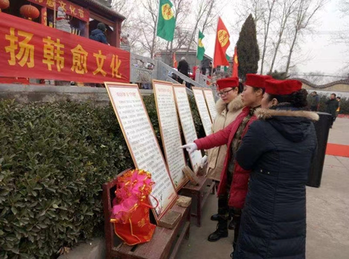今年他们以农历正月十五韩愈诞辰为契机,连续三天举办了第七届韩愈文化节。颂韩愈诗文、讲韩愈故事、演传统文艺、写诗词书画、办文化展板等,激发群众崇尚先贤、昂扬向上的精神风貌。河南修武县雁门村、获嘉县宣阳驿村、焦作市西王封村等多地还将近年非遗项目融入其中,办出了多元素文化共同发展的韩愈文化节。