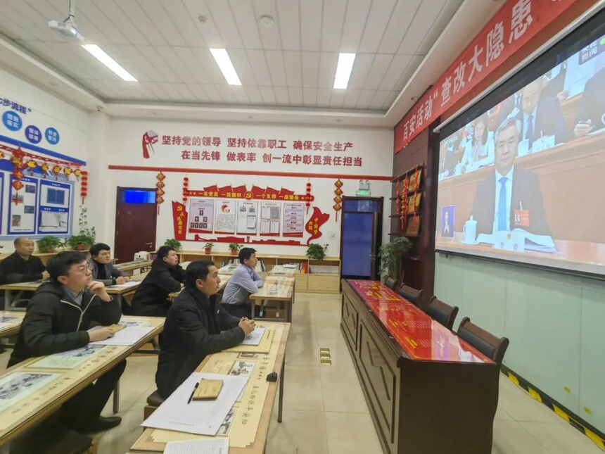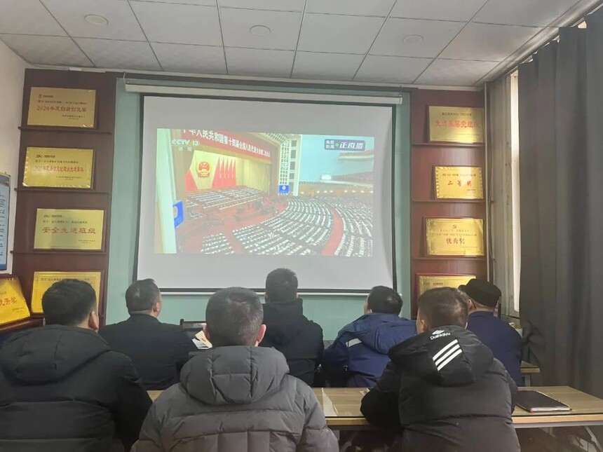 陕西中能煤田有限公司干部职工集体观看十四届全国人大二次会议开幕会现场直播3月5日上午9时,十四届全国人大会二次会议在雄壮的国歌声中隆重开幕,陕西中能煤田有限公司机关及所属各单位组织干部职工集体观看开幕会直播。干部职工们高唱国歌,认真聆听李强总理作政府工作报告。