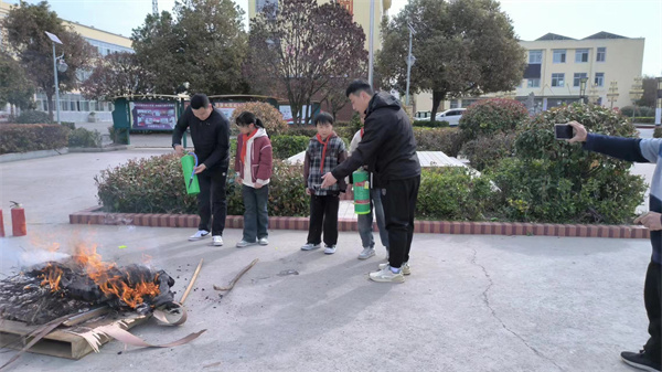 在现场模拟灭火演练过程中,史铁成和王浩老师分别向学生讲解灭火器的使用方法及自救自护方法,并给同学们演示灭火器的用法,指导学生操作灭火器进行灭火,在老师的指导下正确使用灭火器进行实地操作,孩子们不惧危险,勇往直前,在活动过程中,全体师生配合默契,各岗位老师认真负责,整个疏散过程自始至终忙而不乱、井然有序。