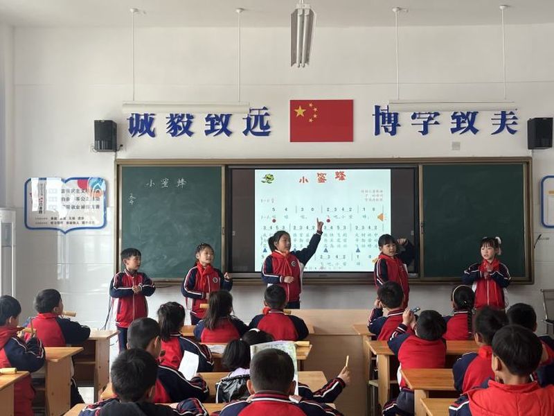 音乐 鲁晓景老师带来的是《小蜜蜂》,教学内容丰富多彩,教学方式生动活泼,既发展了学生的想象力,又增强了学生学习音乐的兴趣和表现音乐、创造音乐的意识。在进行识谱这一环节时,学生用小蜜蜂“嗡嗡”的声音模仿歌曲旋律进行歌唱,加深了对音乐的记忆,学生通过奏、唱、演,在轻松愉快地氛围中从始至终都在 “情景”中学,表现出很高的学习积极性,突破了音乐课枯燥的反复学唱难关。 在这一节课中,学生感受了美,体验了美,发挥了学生的想象力、创造力。培养了学生的演奏能力及对音乐的兴趣,激发了学生热爱音乐的情感。