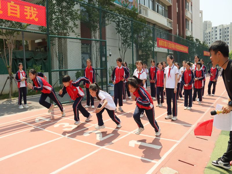 南阳市第八完全学校小学部举行第四届趣味运动会为了落实“双减”政策,丰富校园文化生活,推进学校阳光体育活动的开展,5月7日,南阳市第八完全学校小学部成功举行了第四届趣味运动会。南阳市示范区白河中心学校杜伟主席、雷恒怀老师和全校750余名参加了运动会开幕式。