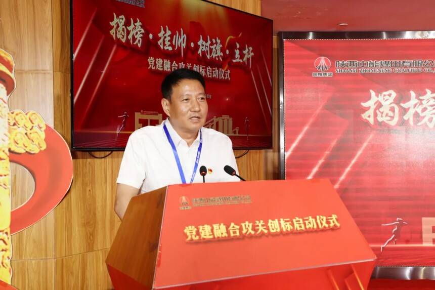 揭榜·挂帅·树旗·立杆——陕西中能煤田有限公司党建融合攻关创标行动正式启动5月18日,陕西中能煤田有限公司“揭榜·挂帅·树旗·立杆”党建融合攻关创标行动在“四级”联动的签约中盛大启动。活动邀请了榆北煤业党委副书记、董事、工会主席张滢,党委工作部部长侯买恒莅临现场。公司党委书记、董事长党亚明,公司领导唐志章、高海军、马翔、苏炜、钱进、曹涛、刘平、张振全、李昊,总经理助理刘建峰及机关各部门负责人、基层党组织书记、党员代表等80余人参加。 此次公司“揭榜·挂帅·树旗·立杆”党建融合攻关创标行动是全面推进“党建工作成效提升年”,构建全域大党建格局,实现以高质量党建引领高质量发展的具体举措。仪式启动前公司党委副书记高海军对党建融合攻关创标行动方案进行解读。