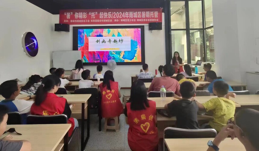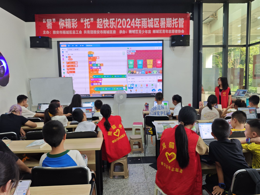 四川农业大学“信”火志愿五组圆满开展暑假支教夏令营活动【图文:严漫漫】 为深入学习宣传党的二十大精神,积极响应共青团中央关于全国大学生“返家乡”社会实践活动的号召,2024年7月8日至7月16日,四川农业大学信息工程学院“信”火志愿五组的一群大学生志愿者,带着对教育的热爱与对科技文化的传播使命,于雨城区少年宫开展了暑期支教夏令营活动,为9至12岁的小学生们带来了一场别开生面的学习盛宴。 在丰富多彩的支教夏令营活动中,大学生志愿者们充分发挥自己的专业优势,精心设计了每一堂课程,力求让孩子们在轻松愉快的氛围中学习知识、培养兴趣、激发潜能。Scratch编程课上,孩子们在志愿者的引导下,通过拖拽代码块的方式,亲手创建出属于自己的小游戏和动画,体验到了编程的乐趣与成就感;趣味手工课上,孩子们动手制作了各种创意手工艺品,不仅锻炼了动手能力,还培养了创新思维和环保意识;趣味历史与地理课上,志愿者们以生动有趣的方式,带领孩子们穿越时空,探索古今中外的历史文化和地理奇观,拓宽了孩子们的视野;而音乐启蒙课则让孩子们在旋律与歌声中感受到了艺术的魅力,激发了他们对音乐的兴趣与热爱。