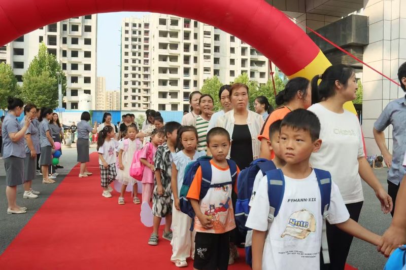 南阳市第八完全学校小学部举行“启智润心 礼启未来”2024年秋期新生入学仪式为营造浓厚的开学氛围,培养一年级新生的学习兴趣,帮助学生树立明礼、乐学、爱国、感恩,8月31日上午,南阳市第八完全学校小学部举行“启智润心、礼启未来”一年级新生入学仪式。学校全体教师和一年级新生及家长参加此次活动。 迎着朝阳,伴随着音乐,一年级孩子们拉着爸爸妈妈的手依次跨过了“启智门”来到了“智慧大转盘”,在这里得到了一年级的第一个美好祝愿,并合影留念。随后全体教师以及所有新生和家长来到报告厅开启新生入学仪式,校领导和教师代表用红色朱砂在学生的额头正中点上红痣,开启智慧;正其衣冠,并送上祝福的话语。学生行拜师礼,表达对老师、家长的感谢。最后,全体学生宣誓,展望美好的未来。