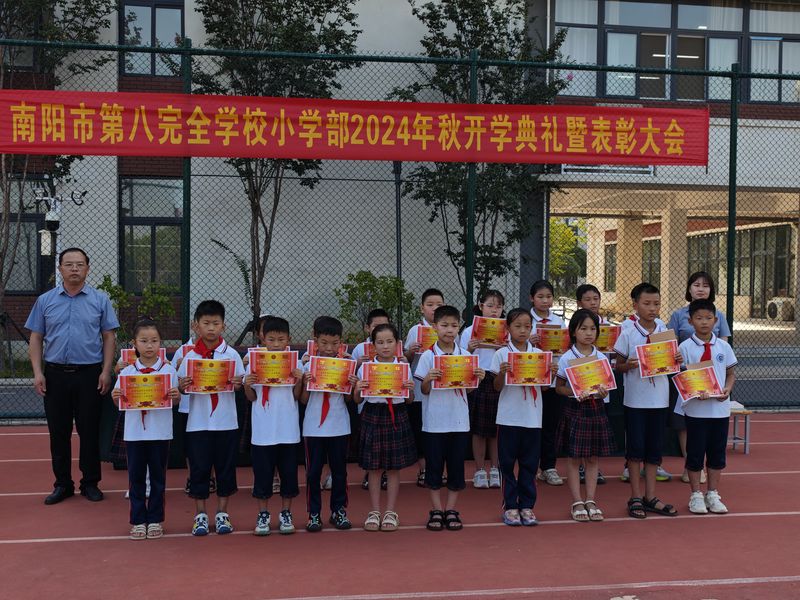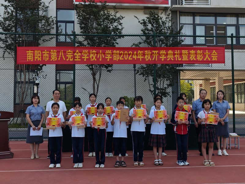 南阳市第八完全学校小学部举行开学典礼暨表彰大会9月5日上午,南阳市第八完全学校小学部隆重举行“汲奥运之能 立远大之志”2024年秋期开学典礼暨表彰大会。南阳市城乡一体化示范区白河中心学校包校领导和学校700余名师生共同参加典礼。