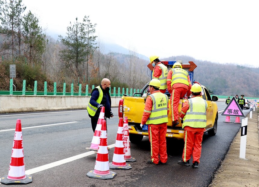 广平高速组织冬季恶劣天气突发事件应急演练为提升高速公路冬季恶劣天气突发事件及时响应、多方协作、应急处置能力,12月20日,重庆两江新区分公司(运营公司)广平高速组织针对性演练活动。 演练背景为,广平高速沿线气温骤降,部分高海拔、山阴面路段出现积雪结冰;一辆小轿车行驶至平广向K38处因发生侧滑碰撞到护栏,司机停车后拨打12122报警电话。 接到报警电话后,广平高速监控中心立即调出事故现场画面,经初步研判后启动应急处置预案;“一路三方”值班领导迅速到达监控中心联合指挥,封控、救援、清障等应急力量紧急向事故现场开进。封控小组先行一步,临时封闭高速入口,在事故现场后方设置警示标志,为后续行动留下安全空间;救援小组按照“先人、再车、后设施”顺序,检查人员伤亡和车辆、路面设施受损情况,做好现场应急处理和后送医院准备;清障小组到达后,拖走事故车辆,人工与机械结合清理路面积雪结冰、布撒融雪剂,维修护栏。 在现场处置的同时,高速入口收费站工作人员做好滞留车辆疏导、人员安抚工作,“一路三方”联合党员突击队和团员青年编成第二梯队做好增援准备。 四川省高速公安总队二支队十三大队大队长凌阳对演练活动进行了讲评,认为,天曌公司多方协调、牵头承办,履行安全运营企业主体责任好;其他单位联勤联动、密切协作,同心聚力共保安全意识强。指出,演练中还存在一些问题和不足,要进一步总结经验、加强训练,以过硬能力为人民群众提供可靠的交通安全保障。 此次演练,四川北新天曌投资发展有限公司领导、机关部门和运营一线人员,四川省高速公安总队二支队十三大队、四川省高速执法总队二支队四大队、福建涌智养护公司共计7台车辆(设备)、20余人直接参加。